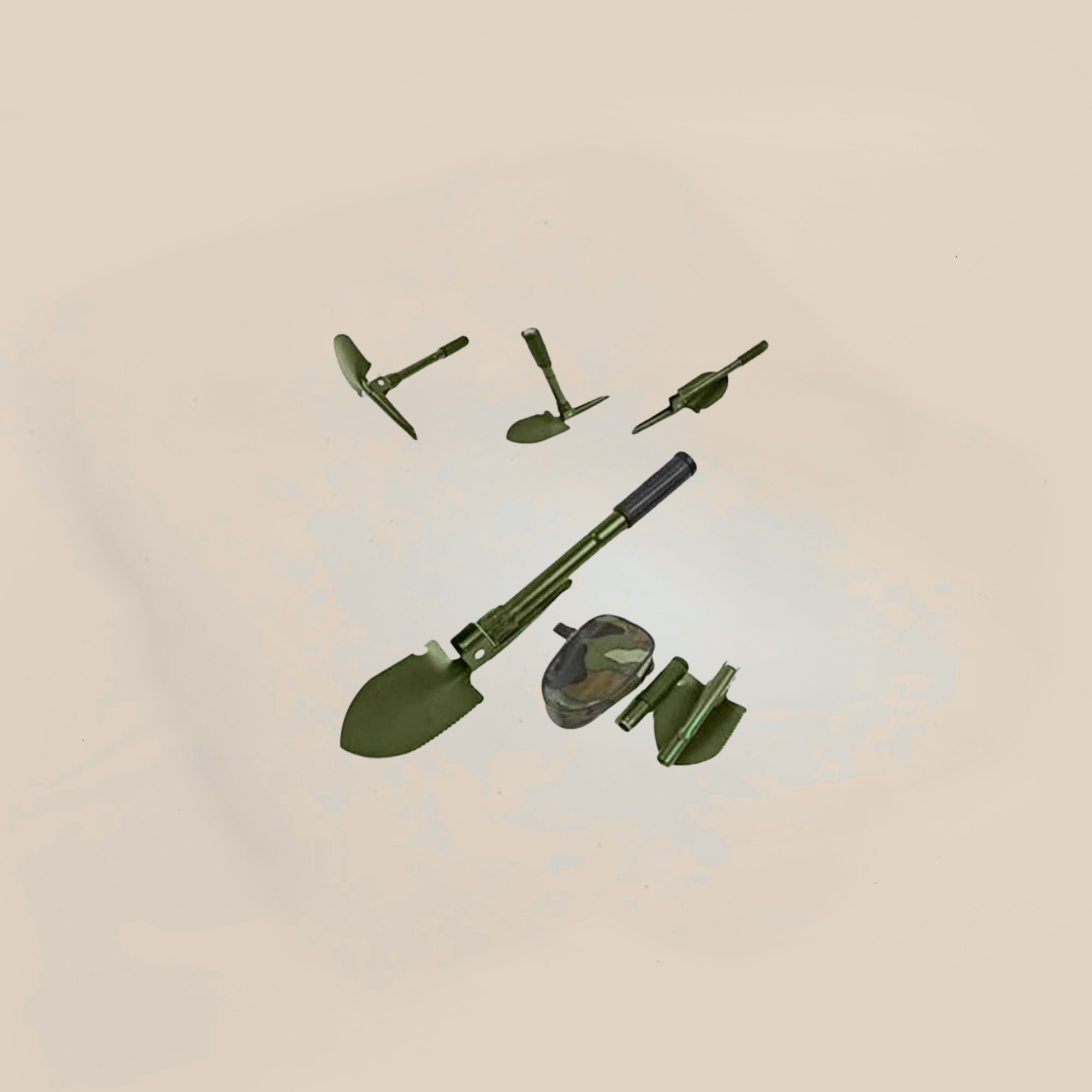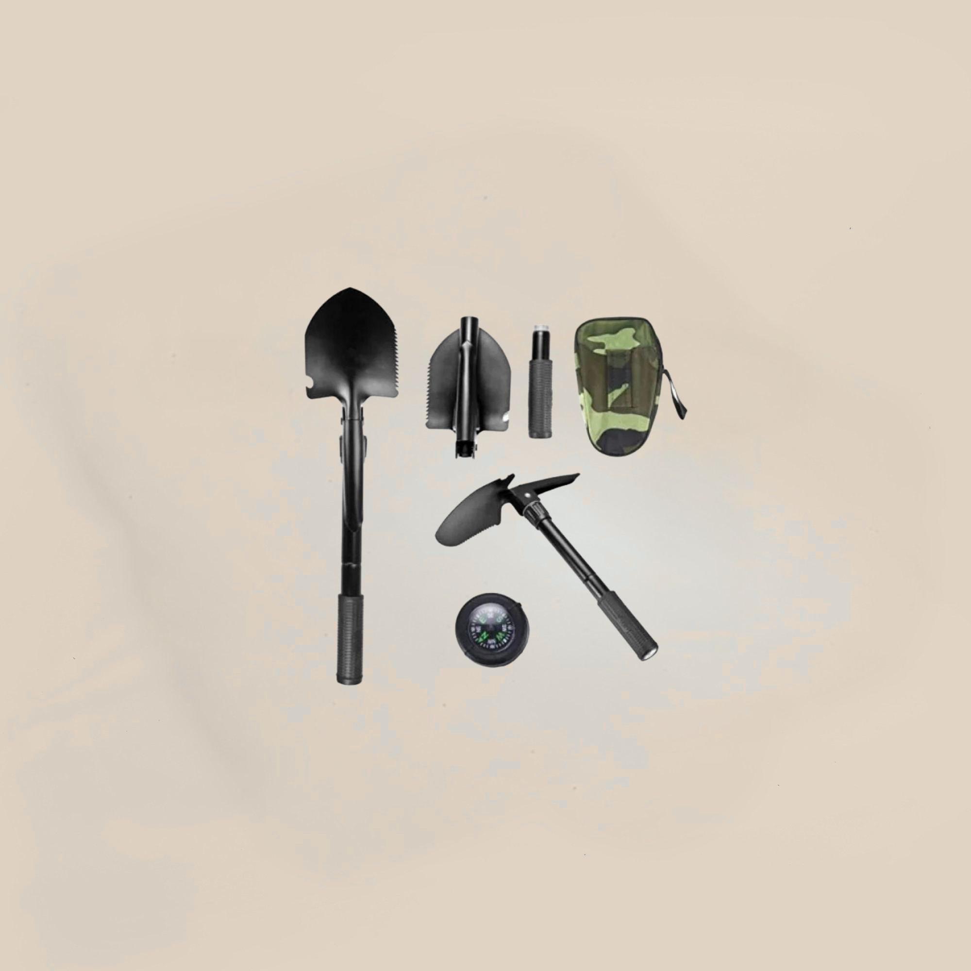 Doğa tutkunları ve kampçılar için özel olarak tasarlanmış Çok foksyonlu katlanır kamp küreği Cebiniz de de rahatça taşıyabileceğiniz Katlanır kürekTe ayrıca , kazma ,Testere,Şişe açacağı ve Pusula da mevcuttur Portatif kürek i yolculuklarda mutlaka arabanızda bulundurun Ürün ölçüleri: Kurulu kürek uzunluğu 41,5 cm Kurulu kazma uzunluğu 39 cm Tutma sapı çapı 2,5 cm Taşıma çantası ölçüleri 16cm*11cm*4cm Paket içeriği: Bir adet katlanır kazma kürek seti Bir adet taşıma çantası